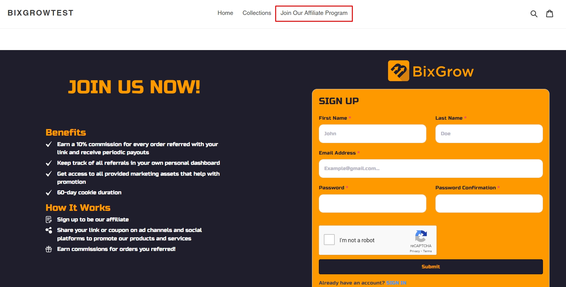 Want to put your affiliate portal on your storefront and recruit affiliates right there? We've got you covered!