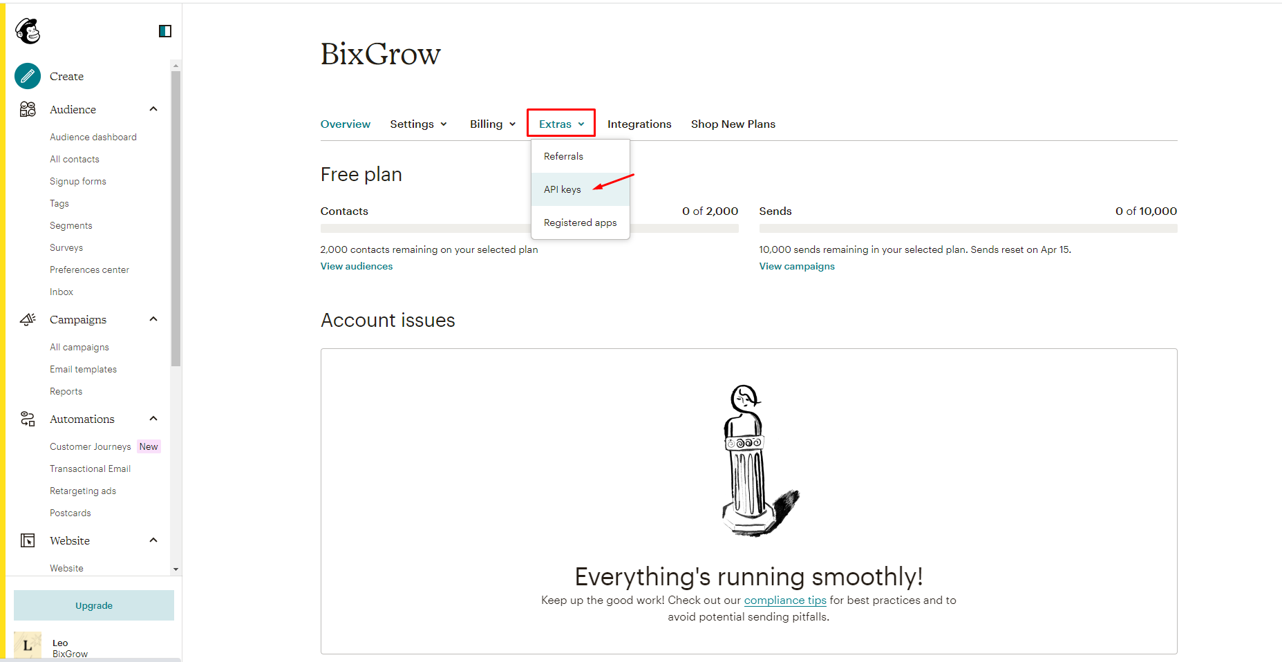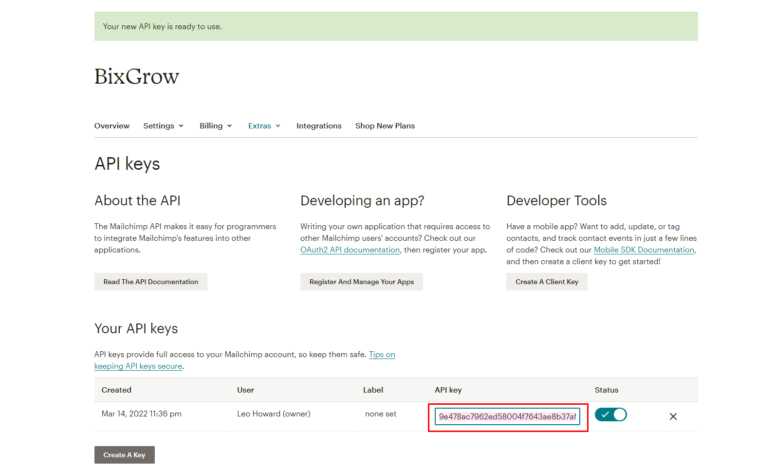 3. Get the MailChimp API key and integrate