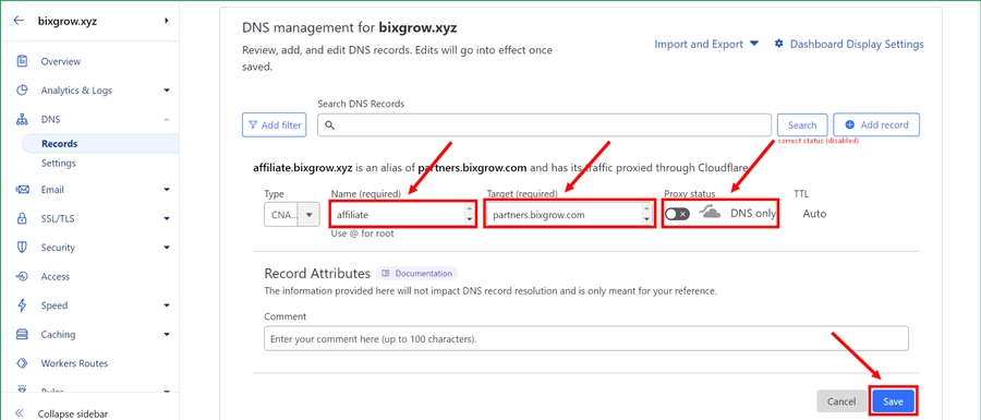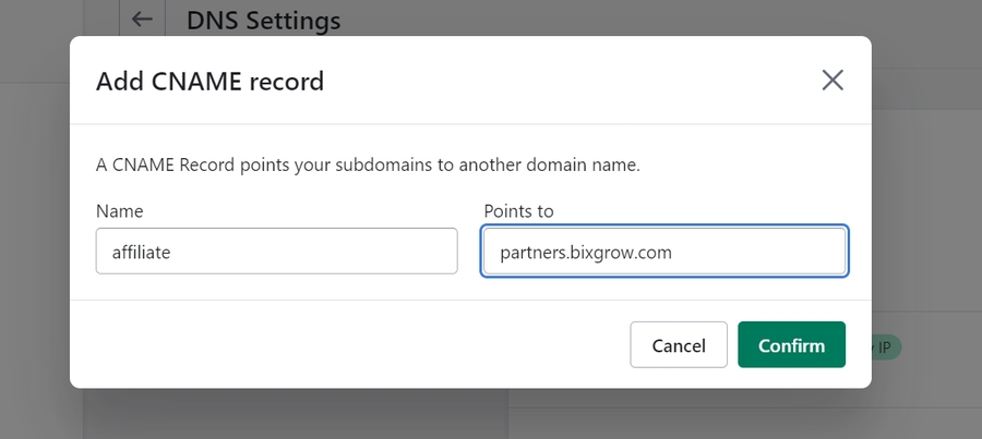Create a CNAME for your desired domain (e.g. affiliate.yourdomain.com) that points to partners.bixgrow.com.